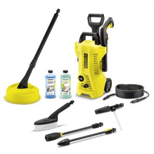 Karcher K 3 Car and Home T150 EU este un aparat de spalat electric cu presiune din gama premium si are un design compact, de culoare galben cu negru. Aparatul este dintr-un platic de buna calitate, ceea ce il face sa fie destul de usor, avand o greutate fara accesorii de 5.8 Kg la dimensiuni de 27.5 x 27.9 x 80.3 cm. Avand o presiune intre 20 si 120 bari, Karcher K 3 are un debit maxim de 380 l/h ceea ce inseamna ca intr-o ora puteti curata o suprafata de aproximativ 25 m². Furtunul de alimentare de inalta presiune are 6 metri astfel incat veti putea sa curatati gardul, aleile sau bancile din gradina dumneavoastra.