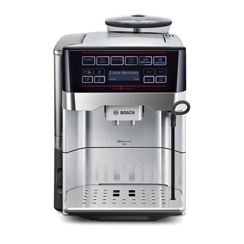 Un astfel de espressor este VeroAroma TES60729RW de la Bosch care are design-ul unui espressor profesional, din inox, cu un panou de control de culoare neagra in partea superioara. Acesta contine taste iluminate pentru diferitele specialitati de cafea sau pentru alte functii, si un afisaj unde vedem numarul si tipul bauturilor care se prepara.